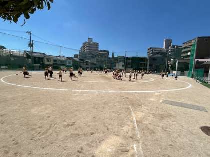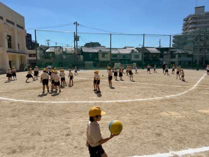 暑さは続いていますが20分休憩は運動場で元気良くドッヂボールや鉄棒で遊んでいます。