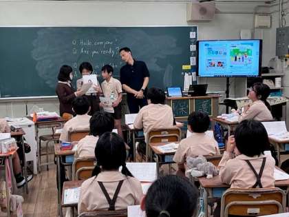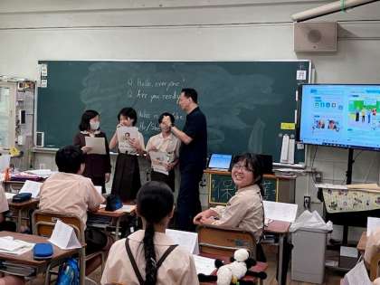 1組は英語で「私は誰でしょう」のゲームをしていました。ヒントを英語で出し、楽しく予想しながら学習しました。