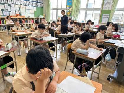 算数「公約数・公倍数」の単元テストに取り組んでいます。