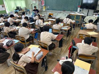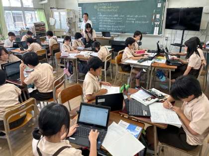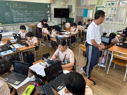 理科「ヒトのたんじょう」ではタブレットを使って母親の胎内での様子や疑問について調べています。