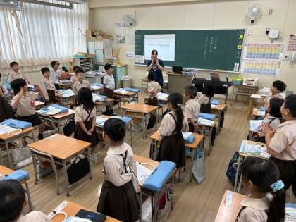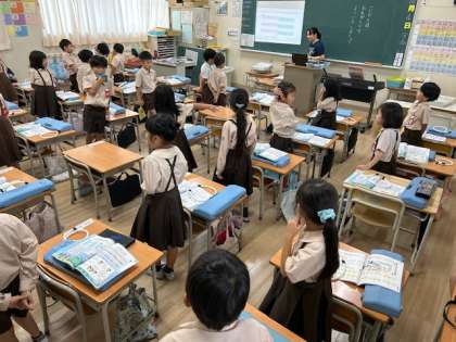 音楽「やまびこ ごっこ」は、呼びかけ役とやまびこ役が向かい合って掛け合いの合唱を楽しみました。