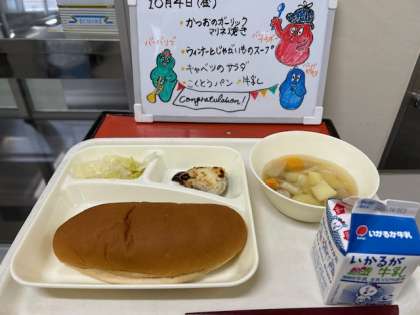 毎日、調理員さんが時間通りに心を込めて給食を作っています。