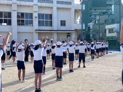 ラジオ体操・整列をしましたが、ビシッと更新する姿や、手先までしっかり伸ばしたラジオ体操を頑張りました。
