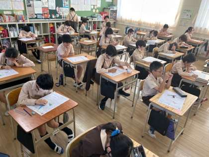 国語「永遠のごみプラスチック」の単元テストに集中して取り組んでいます。