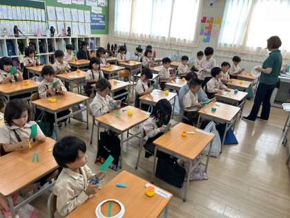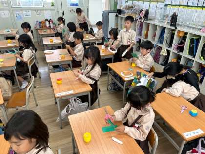 図工「ローラーはんが」はリース作りに取り組んでいます。完成するのが楽しみです。