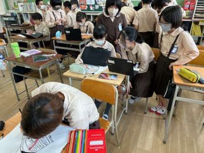 図工の絵画が終わったら、ハロウィンパーティの準備を進めています。