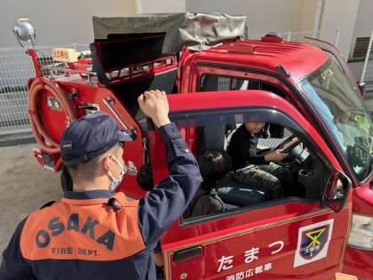 もしもの時に備えて、区役所や消防署のご協力をいただきながら、消火・テント組立・ロープ結び等の体験をしました。