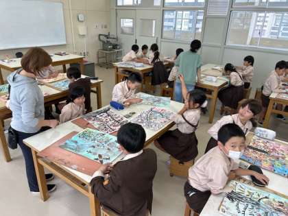図工「願いをかなえる まほうの木」の作品に取り組んでいます。イメージが膨らんで楽しく活動しています。