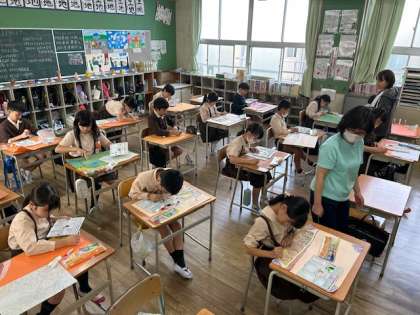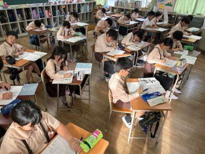 書写「ノートを書こう」では、正しい姿勢で丁寧に書くように努力しています。