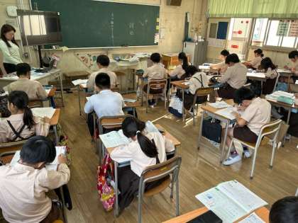 図工「アボリジナルアート」は、細かな作業を集中して根気強く作品に取り組んでいます。