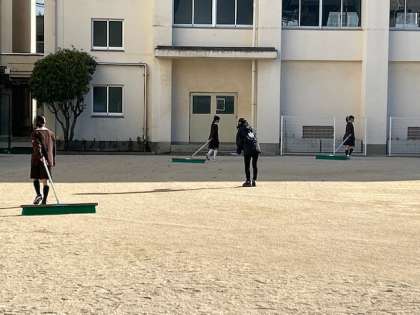 運動委員会の児童もみんなのためにグラウンド整備をしています。