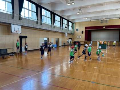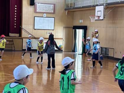 体育「ポートボール」は作戦をもとに各自の役割を考えた動きが良くなってきました。
