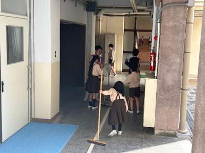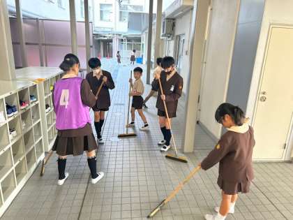今週は、たてわり班清掃です。竣工式を迎える週なので協力して心を込めて掃除に取り組んでほしいです。