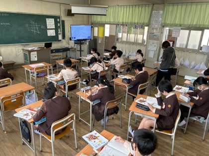 算数「平行と垂直」では、方眼紙を使って、平行や垂直な直線を引きました。特徴や意味を理解しました。