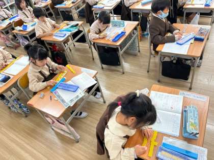 算数「ひきざん」では、16-7の繰り下がりのある引き算の仕方をブロックを使って考えました。16を10と6に分けると計算できました。