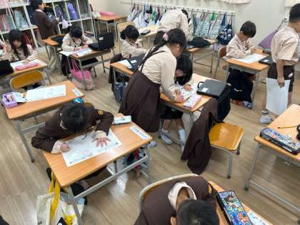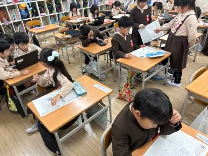算数「13-9のけいさん」では、繰り下がりの引き算の仕方を思い出しながら解いています。