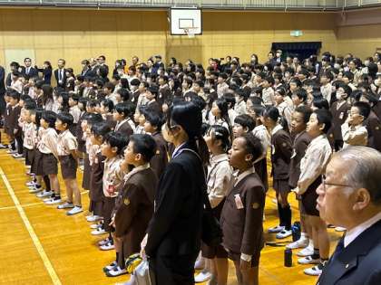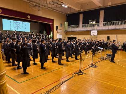 国歌、市歌を吹奏楽の演奏で、しっかりと歌いました。