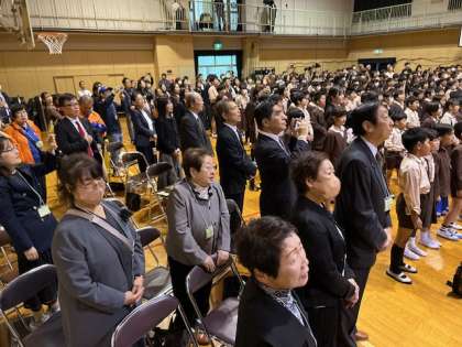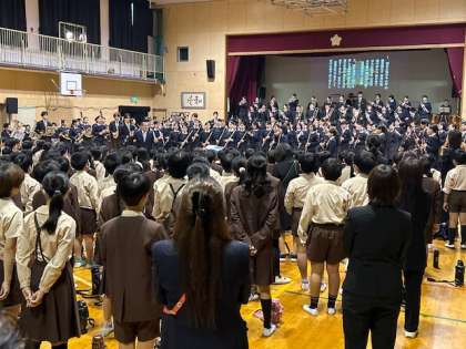 校歌は、勇壮な曲に編曲していただき、心を込めて歌いました。