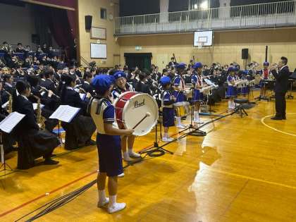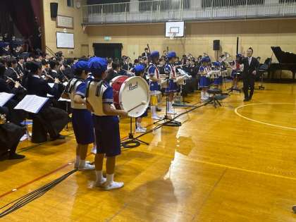 鼓笛隊の11名は桐蔭高校との吹奏楽とコラボをしました。さんぽ・小さな世界・ミッキーマウスマーチを演奏しました。