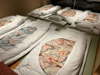 お土産を買い、お風呂にも入って さっぱりしました。部屋に戻ると布団が敷かれています。この後はレクリエーションタイムですが、気持ち良く眠れそうです。
