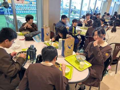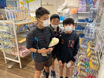土産ショップで品定めをしています。お腹が空いてきて、昼食を取る班も増えてきました。