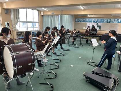 ミュージッククラブは、大阪桐蔭高校が演奏した「夢をかなえて」の合奏をしています。