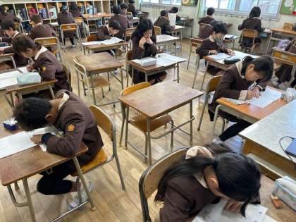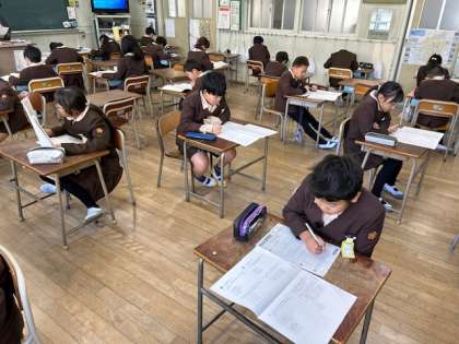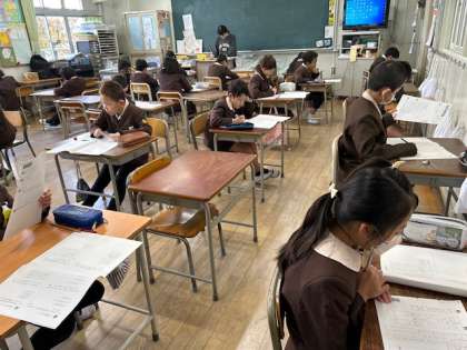 初めての経年調査テストを受けています。冊子のテストに戸惑いがありますが、真剣に取り組んでいます。
