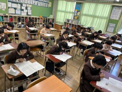 じっくりと問題を読み、しっかり考えて答えていきます。鉛筆の音しか聞こえない程、集中しています。