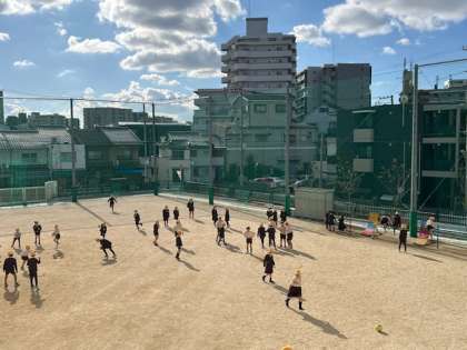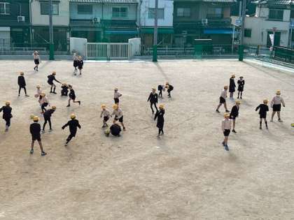 テストの合間の中休みは、気分転換を兼ねて運動場で思いっ切り遊んでいます。