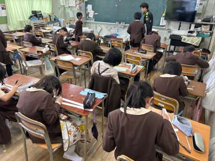 図工「切り絵」は作品のタイトルを決めて清書をしています。作品展鑑賞の際には、タイトルもご覧ください。