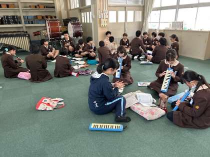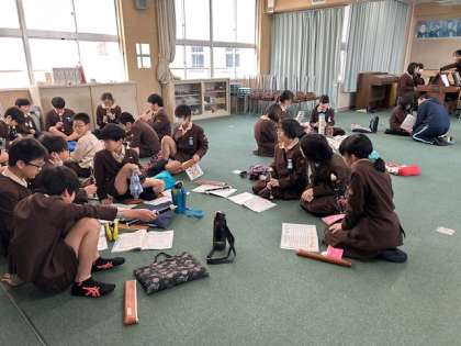 音楽「雨のうた」はパートに分かれて練習しています。みんなで合わせる合奏が楽しみです。