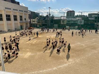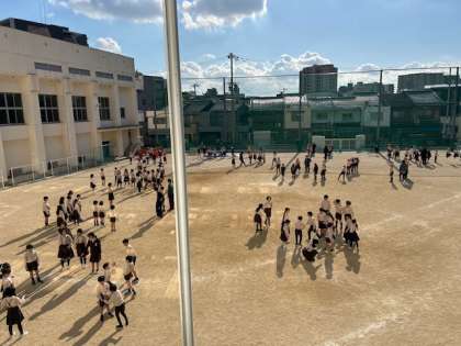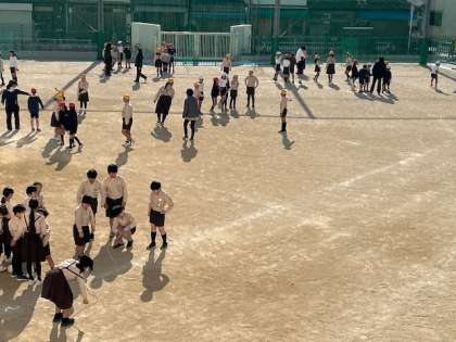 縄跳び週間は20分休みの時間に、たてわり班で長縄をします。高学年は下級生の事を考えながら縄を回したり声をかけたりしています。
