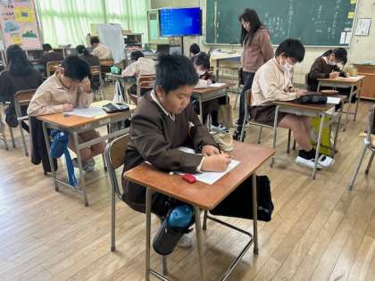 算数「2学期のまとめ」テストをしています。学習内容がどれだけ定着したか楽しみです。