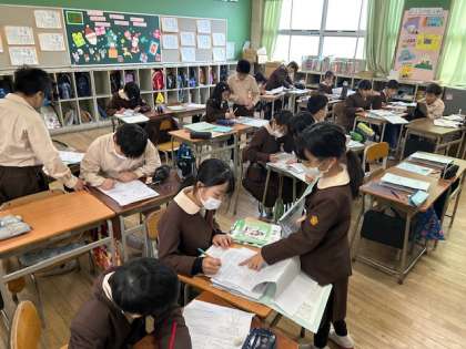 2学期のまとめで、プリントの確かめや課題整理を進めています。友だちと確かめ合いながら定着を図ります。