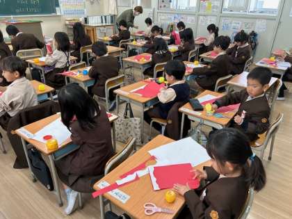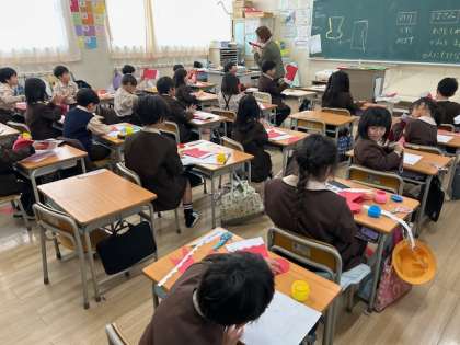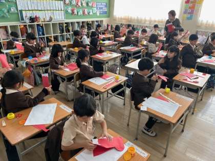 図工「袋づくり」は、サンタさんのブーツの形をしたものを作っています。何が入るか楽しみです。