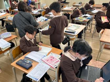 冬休みの宿題の確かめをしています。2学期迄に学習した内容を確実に定着しておきたいです。