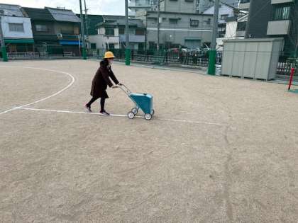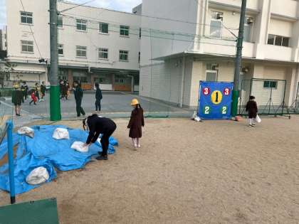健康運動委員会の児童は、みんなが安全に運動できるように朝から的当てや駆け足の準備をしています。