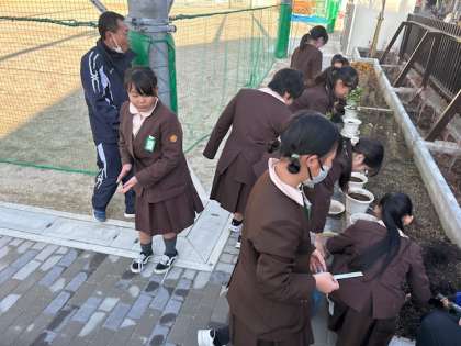 栽培美化委員会は学習園の花の植え替えをしています。