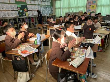英語「What do you want?」は、チャンツのリズムに乗って発音を楽しんでいます。