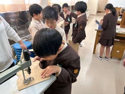 図工「スペシャル伝言板」は、電動糸鋸を使って形を作っています。