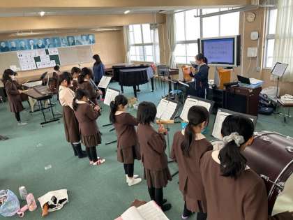 ミュージッククラブは、「夢をかなえてドラえもん」を練習しています。