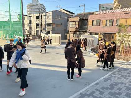 1月末とは思えないほど穏やかな日差しの元、今朝も挨拶ボランティアや運動健康委員会の児童はみんなが気持ち良く学校生活を送る事ができるようにがんばっています。