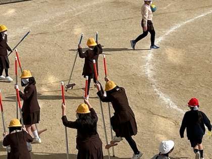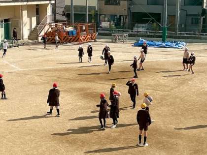 昼休みは運動場で元気いっぱい遊んでいます。たくさん遊んで気持ち良く気分転換できます。