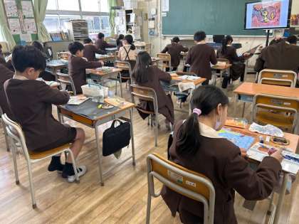 図工「版画」は、ごんぎつねで心に残った場面を表現しています。