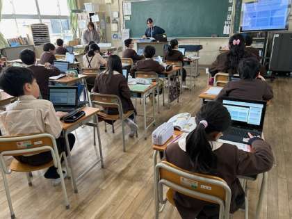 道徳「金色の魚」では、やりすぎてしまう心について考えタブレットを活用して意見の交流をしました。