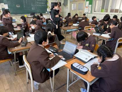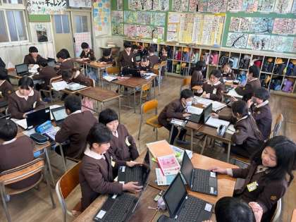 国語「道具のうつりかわりを説明しよう」はタブレットを活用して調べたことを表にまとめていきます。