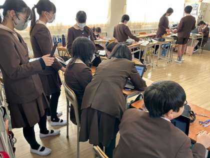 国語「資料を読み取り考えをもとう」では、お互いの考えを交流しています。