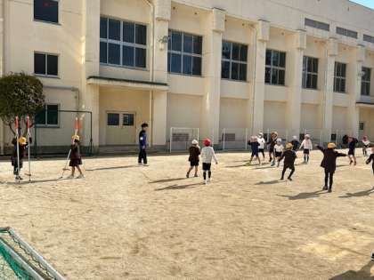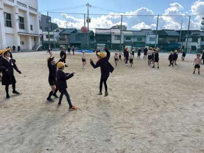 寒さに負けず元気良く遊んでいます。ドッヂボールもずいぶんと上達しました。