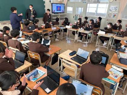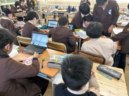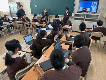 英語「My Dream」では、タブレットにスライドを作り、自分の将来の夢を英語で語りました。