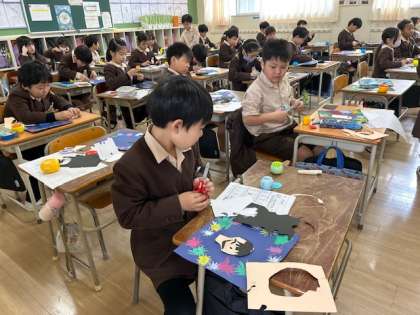 図工「星の王かん」は、模様の中心に自分の顔を入れています。